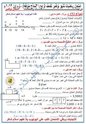 من هذا المنطلق قد رأينا ان أكبر خدمة نستطيع تقديمها لكم هي المساعدة التعليمية لذلك نقدم لكم اليوم تحميل امتحان رياضيات علي مقرر شهر نوفمبر للصف الرابع الابتدائي الترم الأول 2023